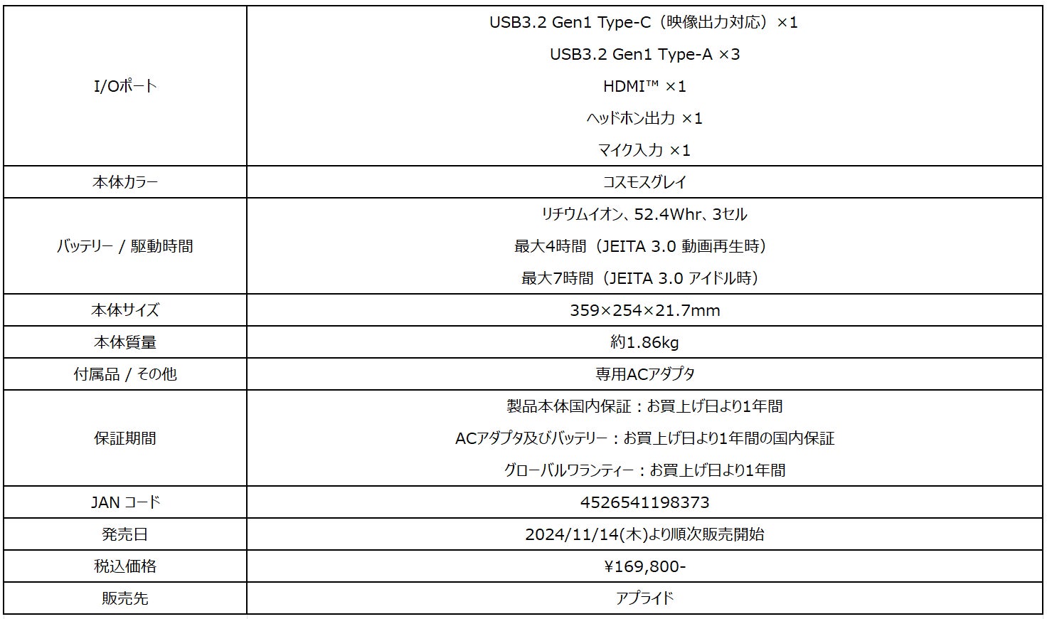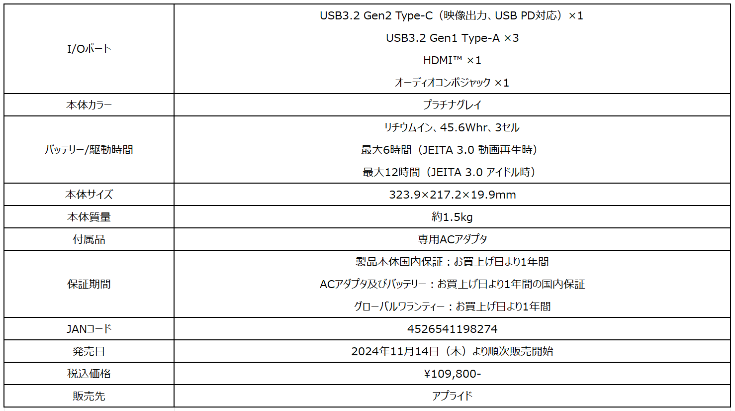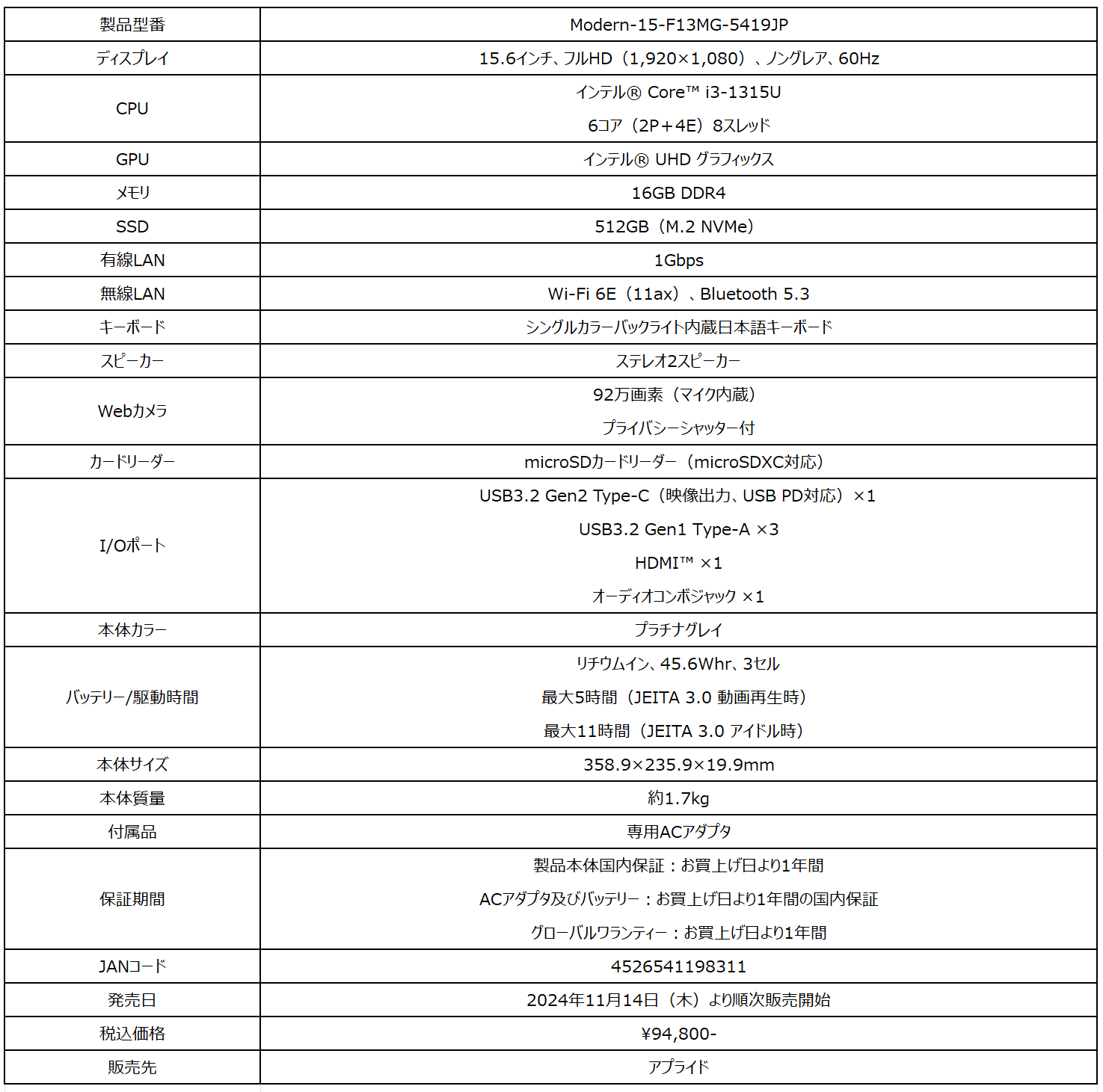この他、新しいデザインを採用したビジネスノートPC「Modern 14/15 F13MG」シリーズのアプライド限定モデルも同時発売いたします。