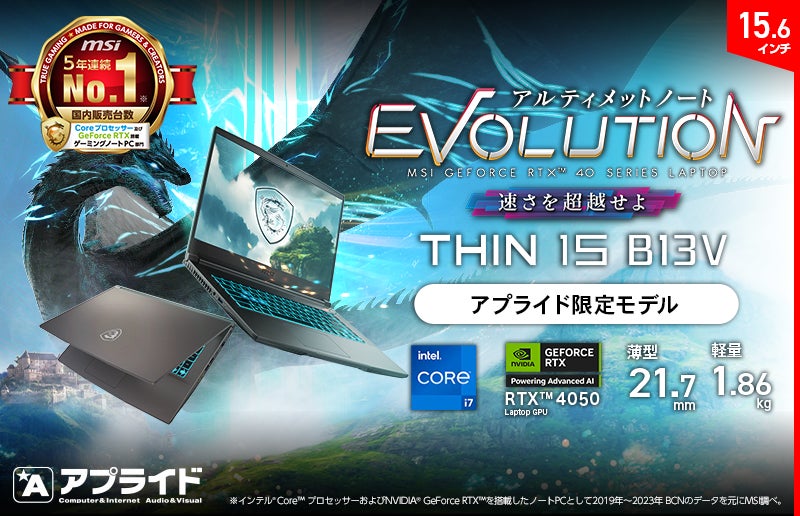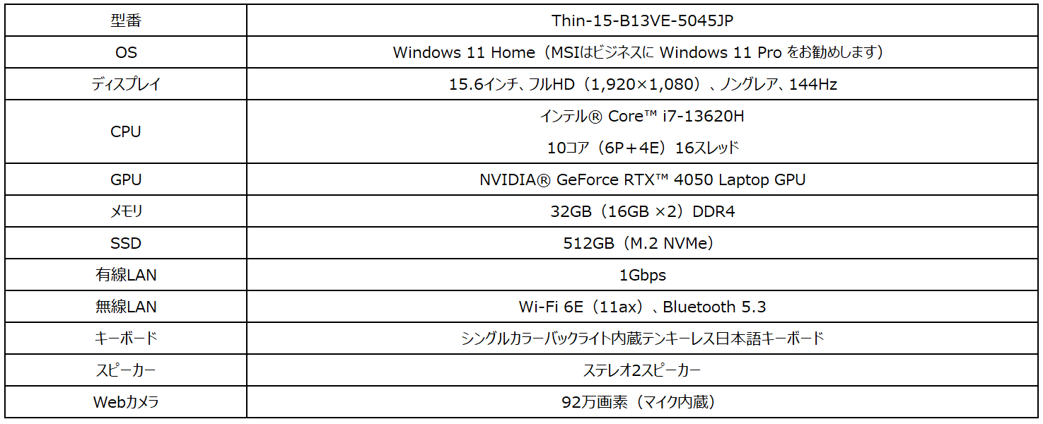 大容量メモリ32GBとRTX 4050、144Hzディスプレイ搭載で17万円切り!!アプライド限定モデル「Thin-15-B13VE-5045JP」発売