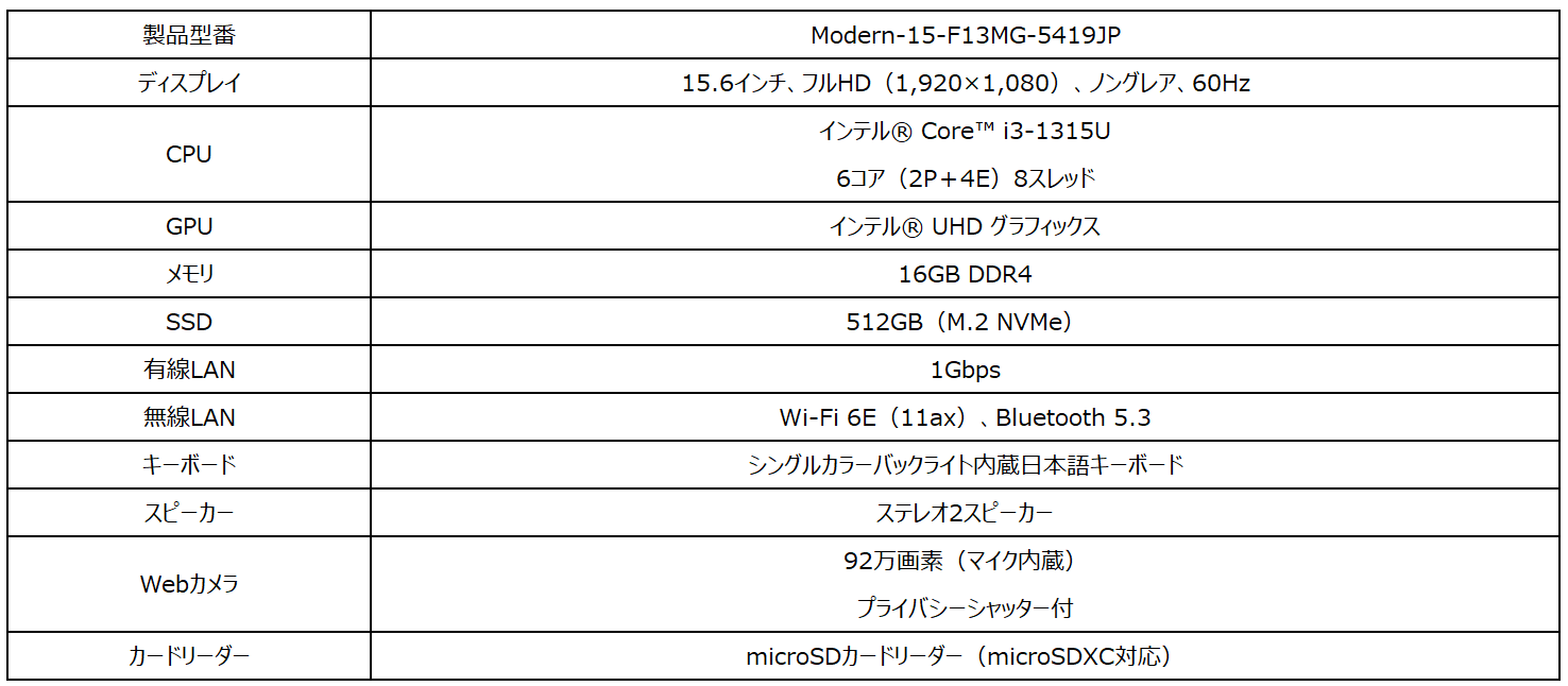 ・Modern 15 F13M 製品ページ:https://www.msi.com/Business-Productivity/Modern-15-F13MX