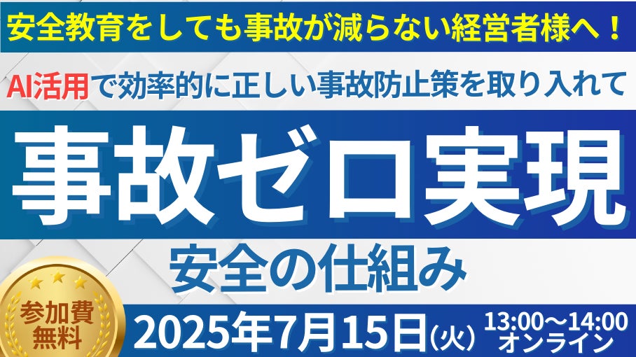 日本最大級の物流コンサルティングファーム 船井総研ロジ株式会社(本社:東京都中央区、代表:橋本直行、以下「船井総研ロジ」)は、2025年7月15日(火)13:00~14:00、 運送会社・物流会社の経営者を対象にした「第3回 人手不足時代の最先端事故防止セミナー」をオンラインで開催いたします。