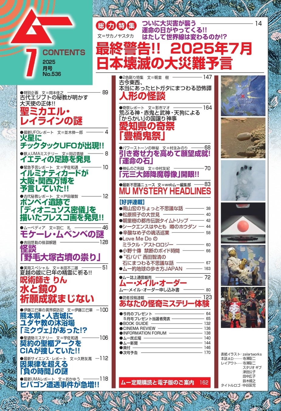 総力特集は、最終警告‼ 2025年7月 日本壊滅の大災難予言‼ 月刊「ムー」7月号発売‼