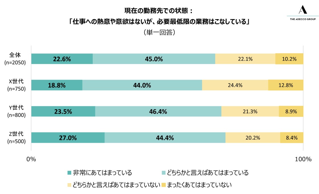 1. X・Y・Z世代の就業者の約7割が、「静かな退職」の状態にあることが明らかに/Z世代は7割以上が「静かな退職」状態に