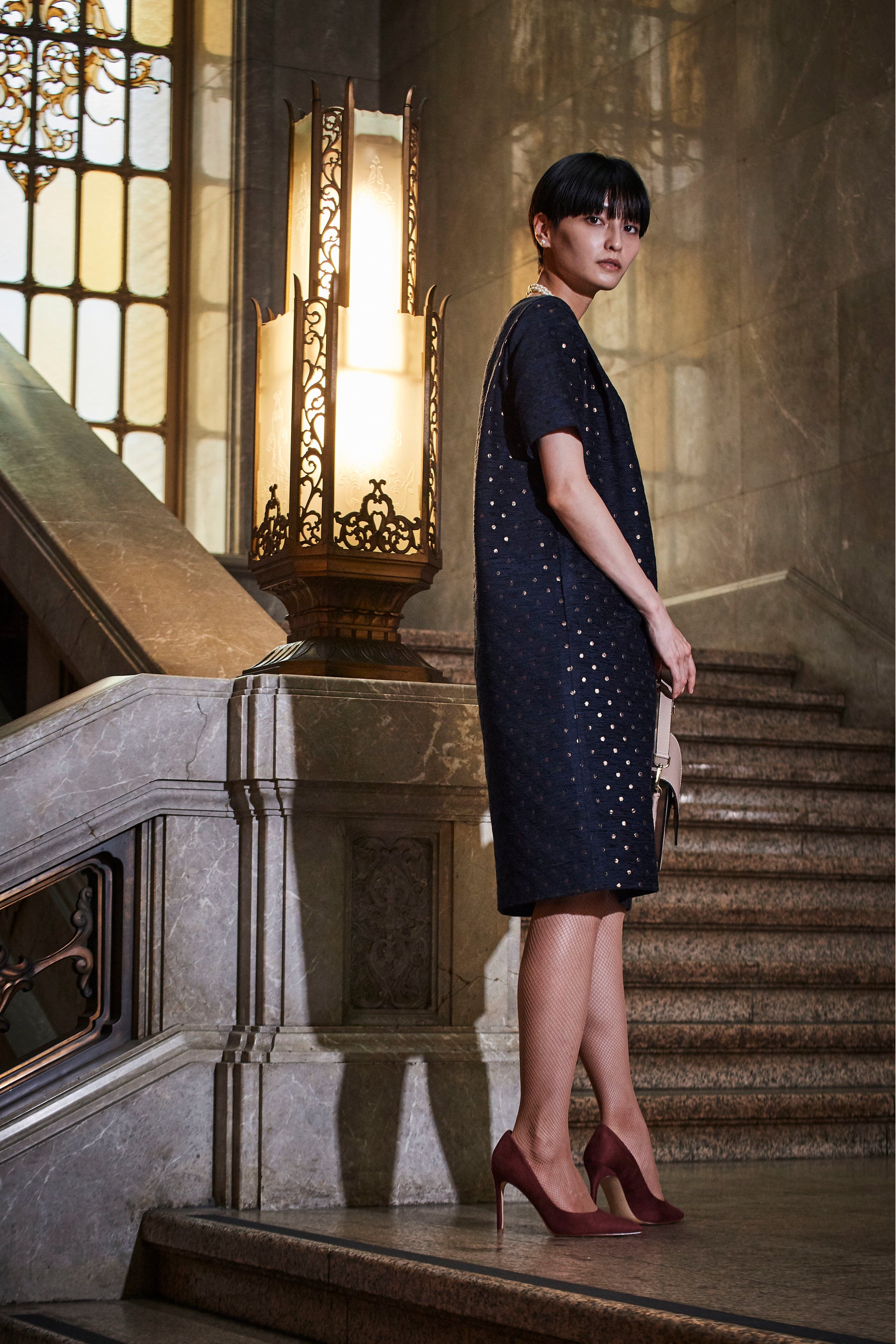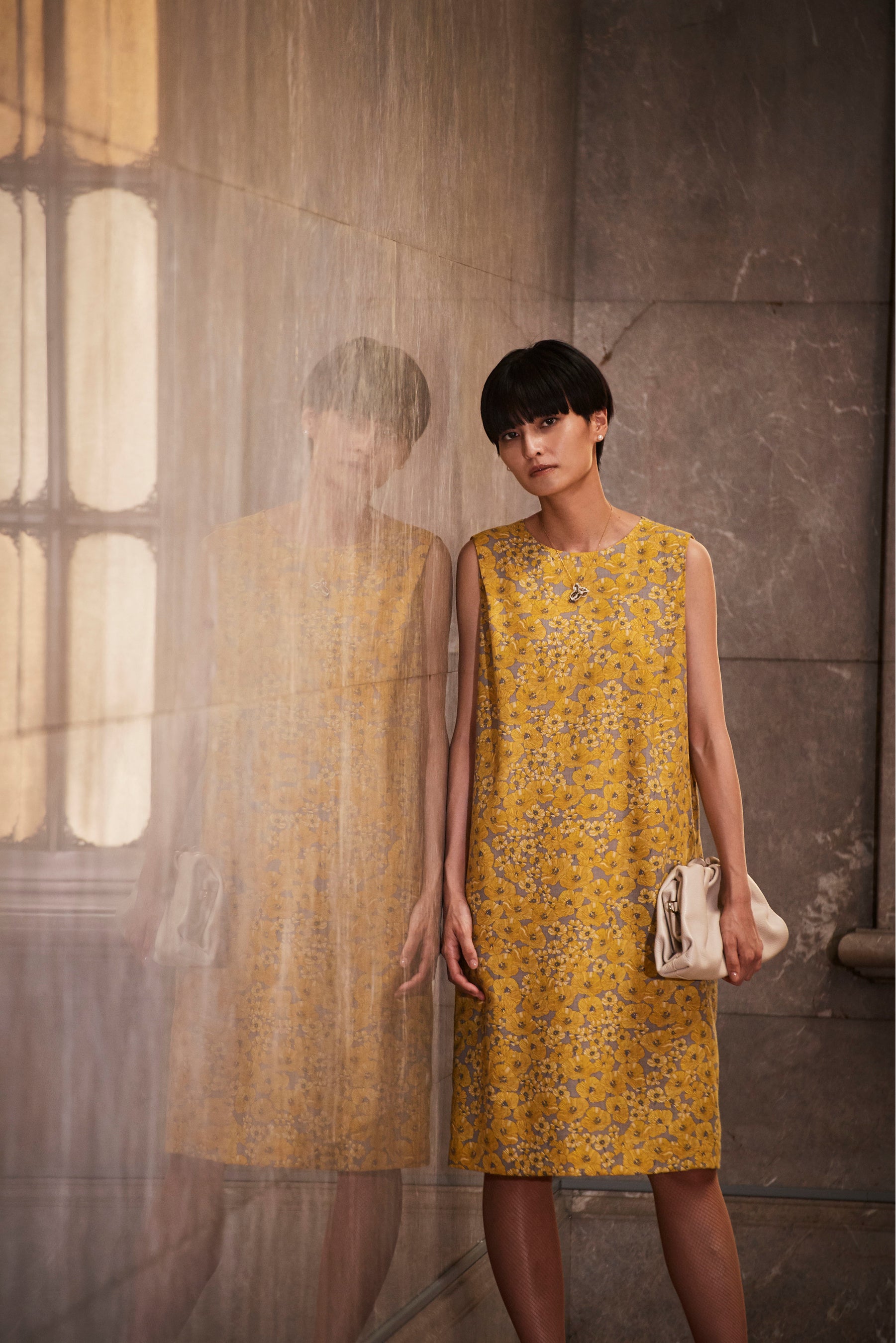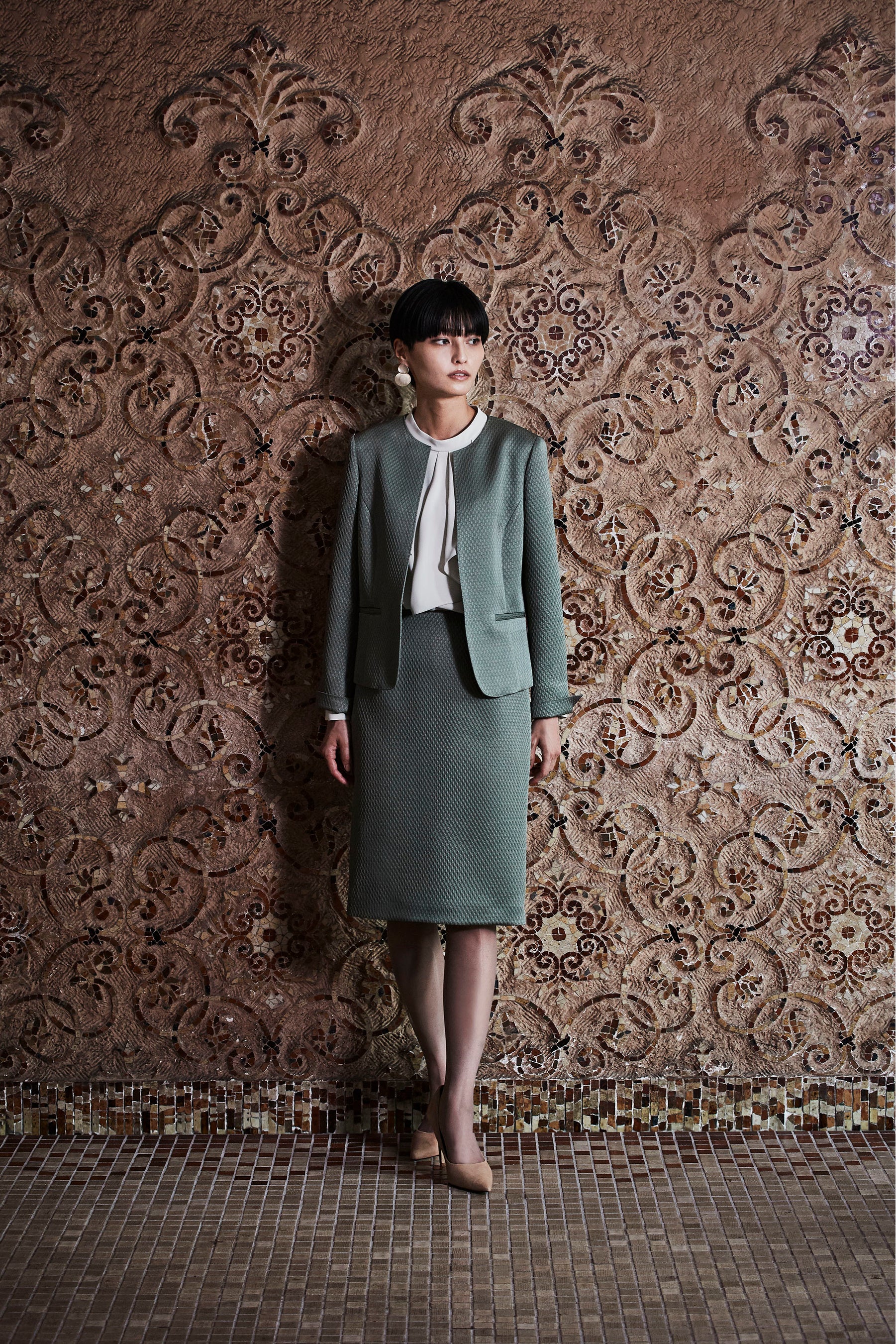 今シーズンのアトラエルは1940年代から60年代のクラシックワードローブからインスパイアされたミックス感のあるツイードや、クラシカルなモチーフのプリント、華やかなジャカードなどを揃えました。