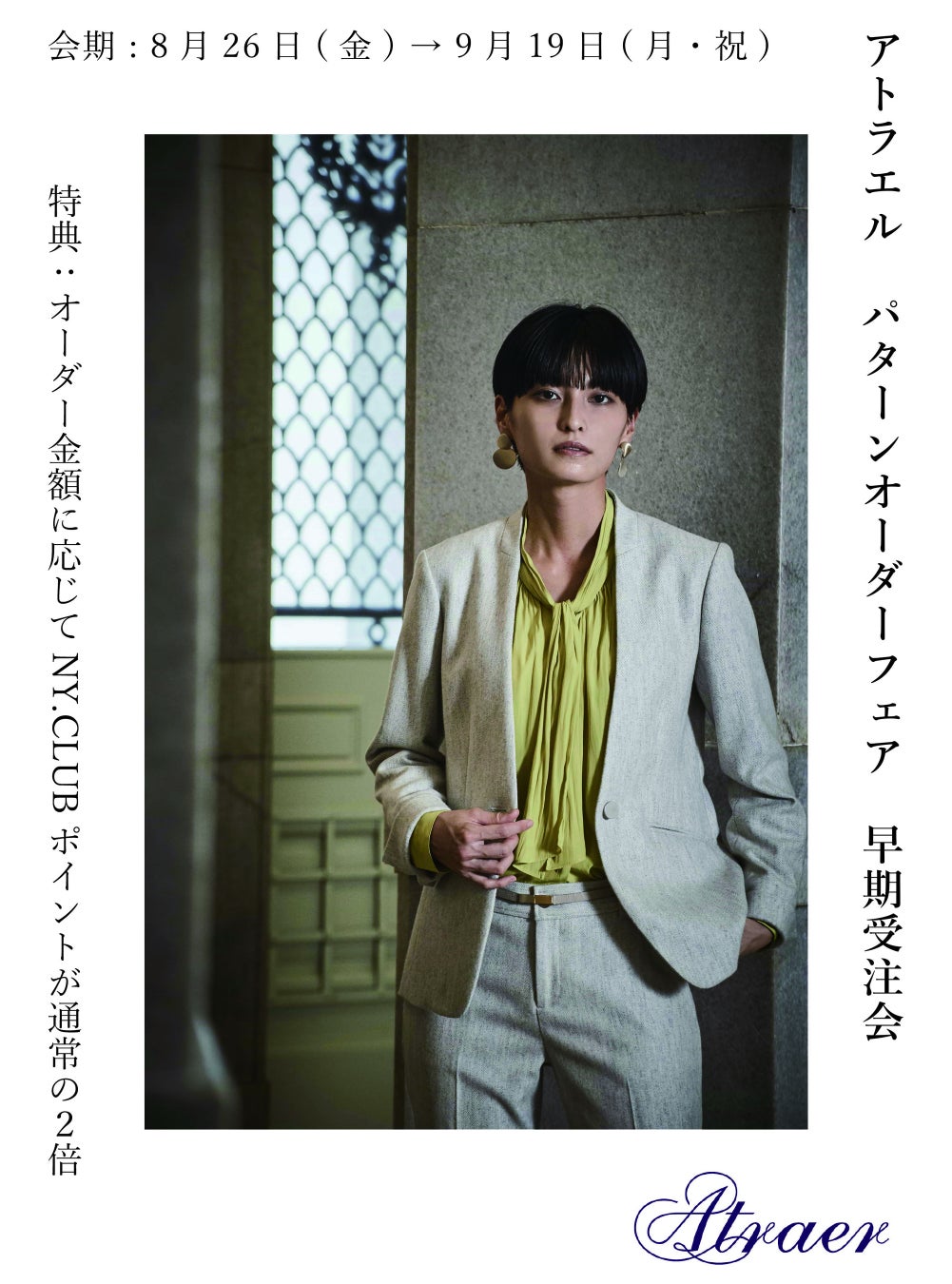 スタイリッシュなレディースパターンオーダーブランド Atraer (アトラエル)。8月26日(金)より22年秋冬新作ファブリックを揃えて <パターンオーダーフェア>早期受注会を開催。