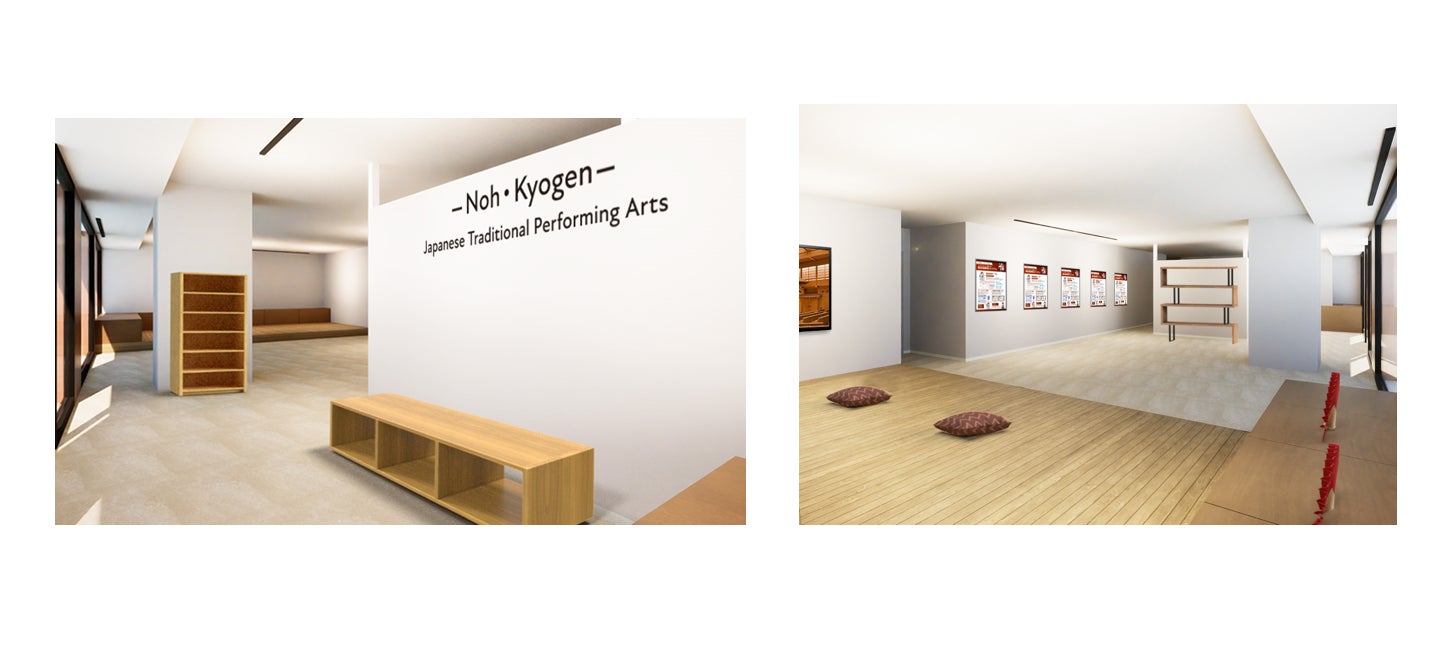 「見る、知る、体験する、学ぶ」の切り口で能・狂言を展開します。能・狂言の上演写真、能や狂言の装束や道具などを実際に手に取ることのできるほか、体験講座を定期的に開催します。能・狂言にまつわるここでしか手に入らないグッズなども販売します。