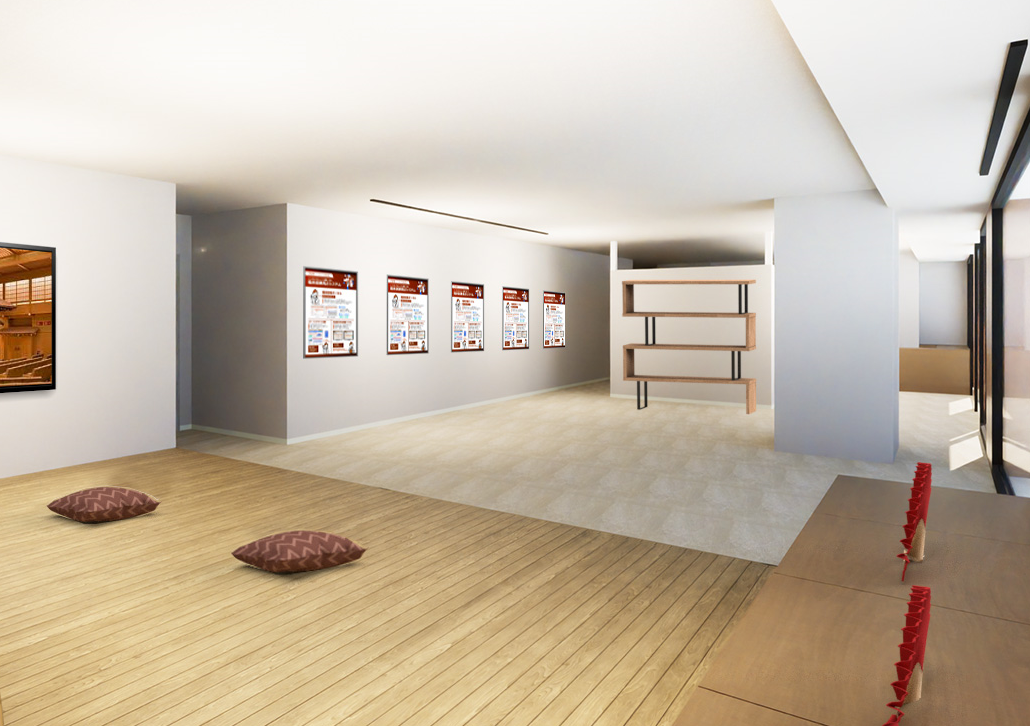 休館期間中の活動のひとつとして、ランドマークプラザ5階に、OTABISHO 横浜能楽堂 をオープンします。横浜有数の規模を誇るランドマークプラザで、能・狂言に馴染みのなかった方たちに、買い物ついでに、会社帰りに、通りすがりにちょっと覗いていただける気軽さで、日本の古典芸能を知っていただける場です。商業施設内での能・狂言紹介施設は全国初。外国人の方にもご覧いただけるよう外国語表記もします。横浜のあらたな観光スポットになること間違いなしです。
