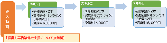 中小機構では、これらの支援モデル3要素を踏まえながら、動画とオンラインを組み合わせ、全3回(基盤スキルⅠ~Ⅲ)で構成された全体カリキュラムによる研修を9月より開催いたします。