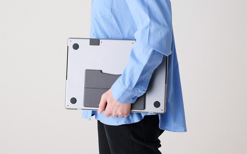 15.6インチまでのノートパソコンに対応。可動部をマグネットで固定できるため、持ち運びにも便利