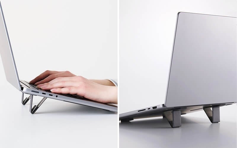 作業しやすい姿勢を維持できる、折りたたみ式のノートパソコン用の薄型スタンド