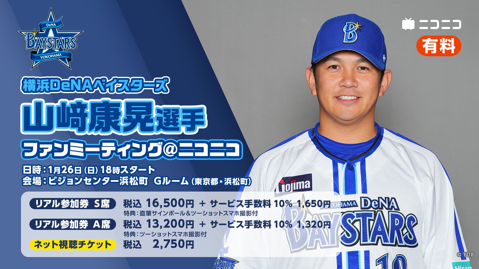 1月26日(日)18時より「横浜DeNAベイスターズ 山﨑康晃選手 ファンミーティング」の両イベントを、リアルとネットで同時に開催、リアル参加/ネット視聴のチケットを【有料】にて販売いたします。