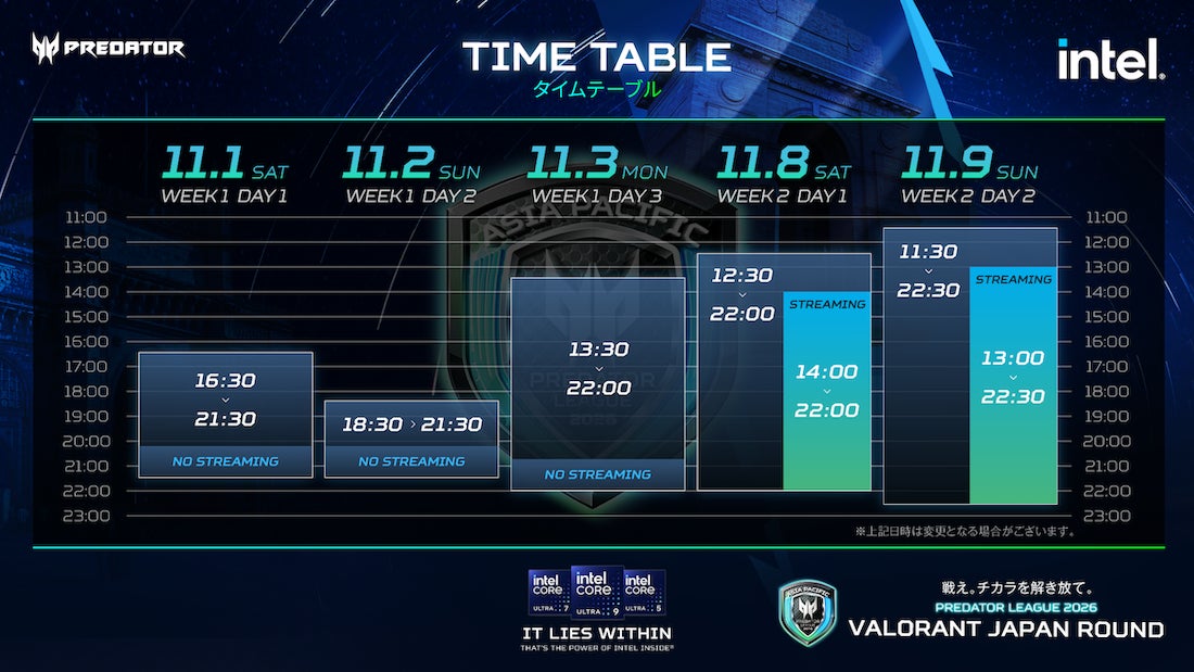 日本エイサー株式会社(本社:東京都新宿区、代表取締役社長:ボブ・セン)は、2025年1月5日から1月12日(渡航予定日・帰国予定日含む)にインド・ニューデリーで開催するAcer Asia Pacific主催のeスポーツ大会「The Asia Pacific Predator League 2026 Grand Finals(アジア・パシフィック プレデターリーグ 2026 グランドファイナルズ、以下Predator League 2026)」に向けた、日本公式予選、「Predator League 2026 VALORANT Japan Round」の開催決定、ならびに同予選への出場チームの募集を開始しましたことをお知らせいたします。