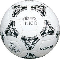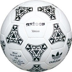 FIFA ワールドカップ™で最初の人工皮革製試合球。これにより本革(牛革)と比較し、耐久性を向上するとともに吸水性を抑える事が可能になりました。デザインは古代アステカ文明の歴史を表現しています。