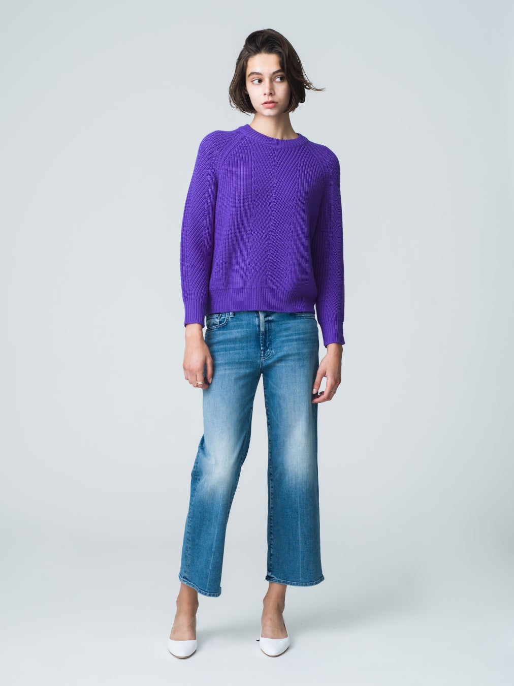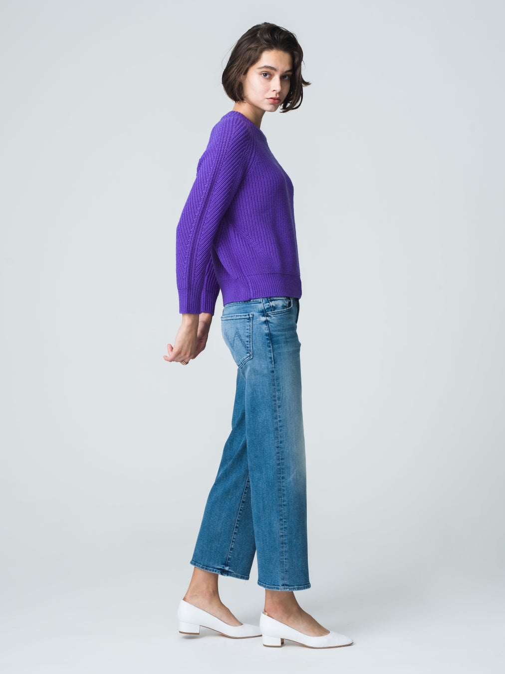 MOTHERのプレミアムライン“MOTHER SUPERIOR”から23FW PREコレクションに初登場した人気モデル「dodger ankle」の日本別注です。100%コットン素材を使用したゆったりとしたストレートワイドレッグで、アンクル丈とハイウエストが特徴です。野暮ったくならないように考え抜いて作られたシルエットにもMOTHERのこだわりを感じられます。美しいブルーウォッシュになるようにセミリジットのデニムに全体的に色落ちを施したこのデニムは硬いので、慣れるまで時間がかかりますが、履けば履くほど味がでるデニムです。ニットと合わせてメンズライクでラフな着こなしが可能で、この冬イチ押しの注目デニムです。