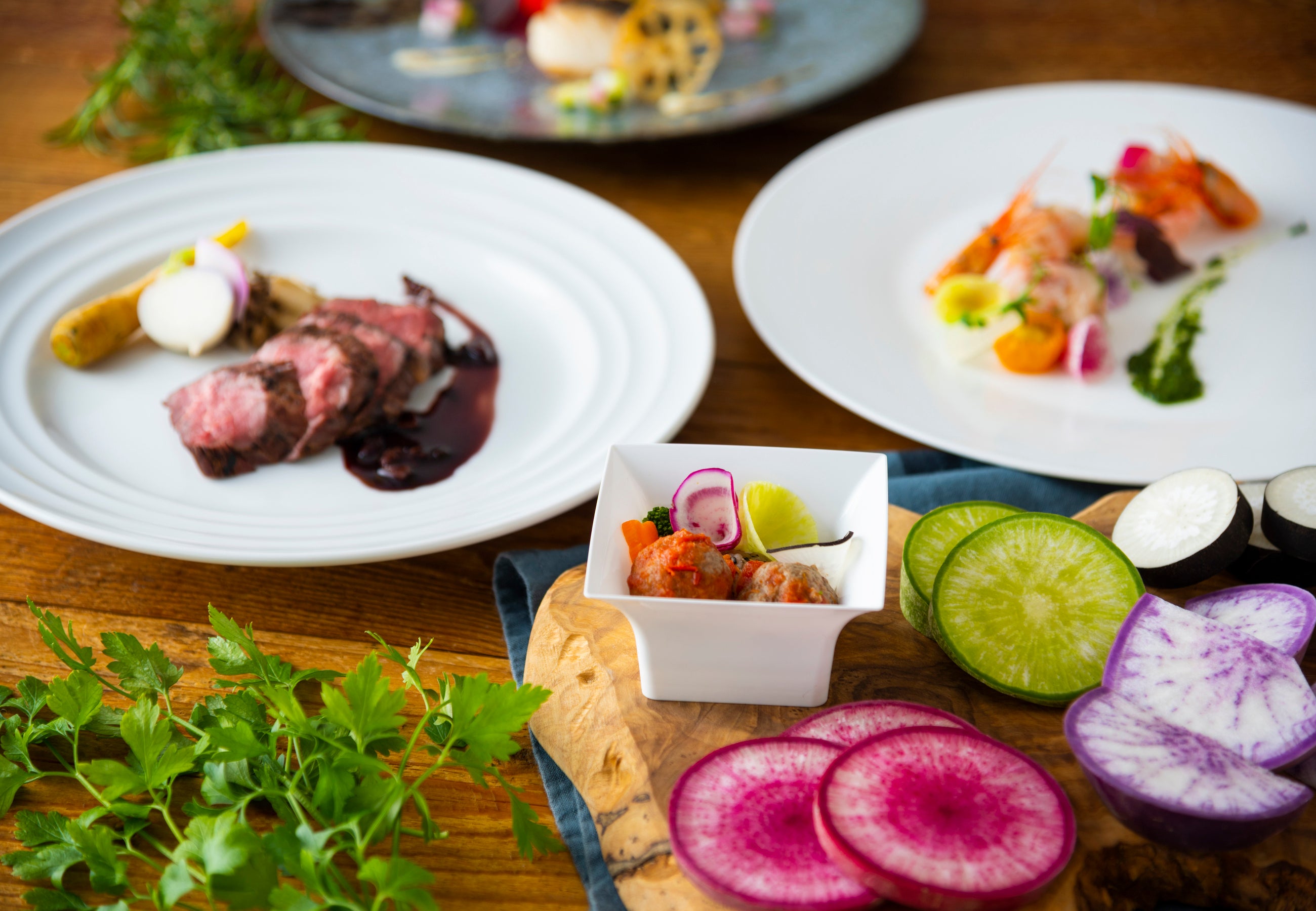 ・紅ズワイガニ、シナノユキマス、池田町産野菜のプレッセ