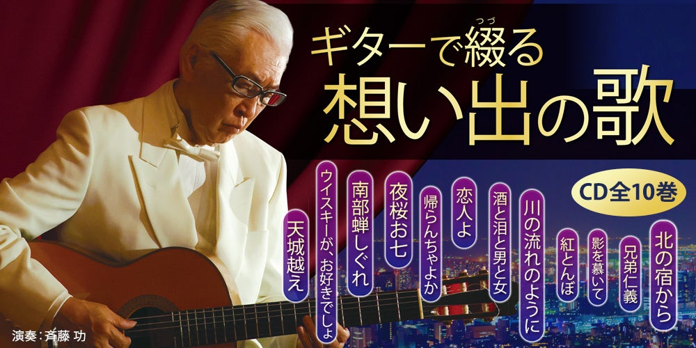 昭和・平成の演歌や歌謡曲などのヒット曲を、斉藤功氏のギター演奏でカバー。人生の軌跡を爪弾く音楽コレクション『ギターで綴る 想い出の歌』、販売開始。