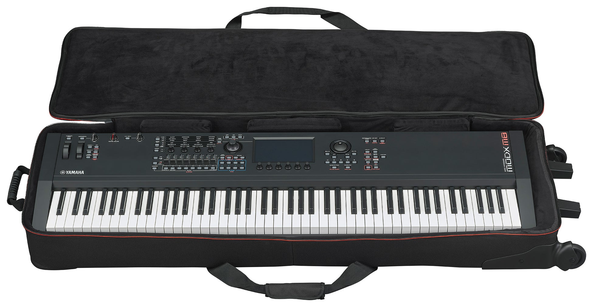 日常的に楽器を持ち運ぶアクティブなキーボーディストのために、本体の質量は61鍵モデルが6.6kg、88鍵モデルでも13.6kgと、同クラスのシンセサイザーとしては非常に軽量に抑えられています。『MODX M6』は61鍵、『MODX M7』は76鍵のセミウェイテッドFSB鍵盤、『MODX M8』は88鍵のGHS鍵盤を採用し、軽量設計でありながら本格的な弾き心地を実現しています。さらに専用オプション品(別売り)として、『MODX M8』には安定性の高いキャスター付きソフトケース「SC-MODX M8」、『MODX M6』『MODX M7』には背負えるバックパックタイプのストラップ付きソフトケース「SC-MODX M6」「SC-MODX M7」をそれぞれ用意しています。