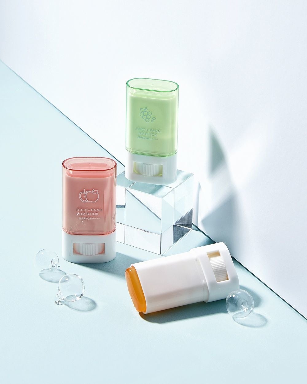 クリアカラーのUVスティック。美容保湿成分ナイアシンアミド配合。フルーツの香り付き。全3種。