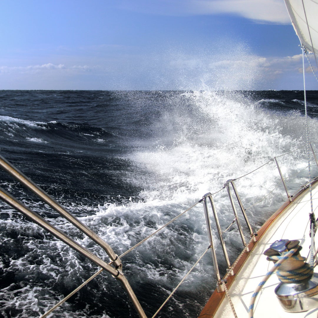 ヨットのメインセイルの前に張り、追い⾵の時に使⽤する三⾓形の帆です。