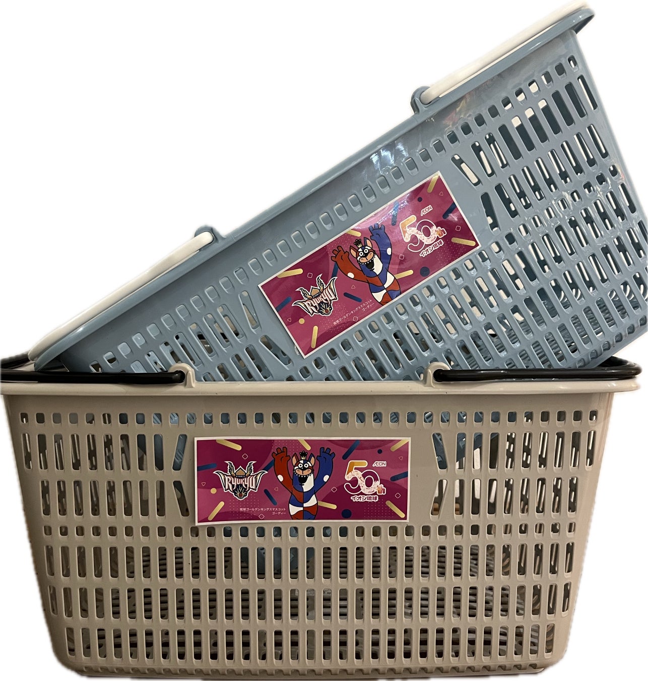 本品は、イオン琉球創業50周年を記念したコラボ商品として琉球ゴールデンキングスのロゴがデザインされた特別な買物カゴとして環境月間の6月に数量限定にて販売いたします。