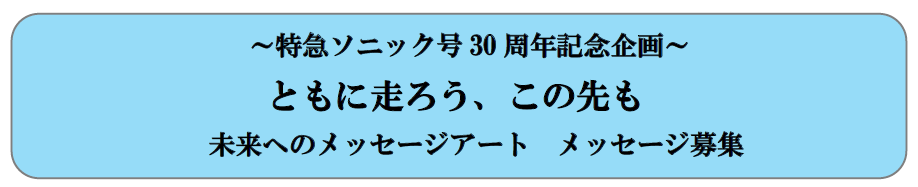 ~特急ソニック号30周年記念企画~ともに走ろう、この先も 未来へのメッセージアート メッセージ募集
