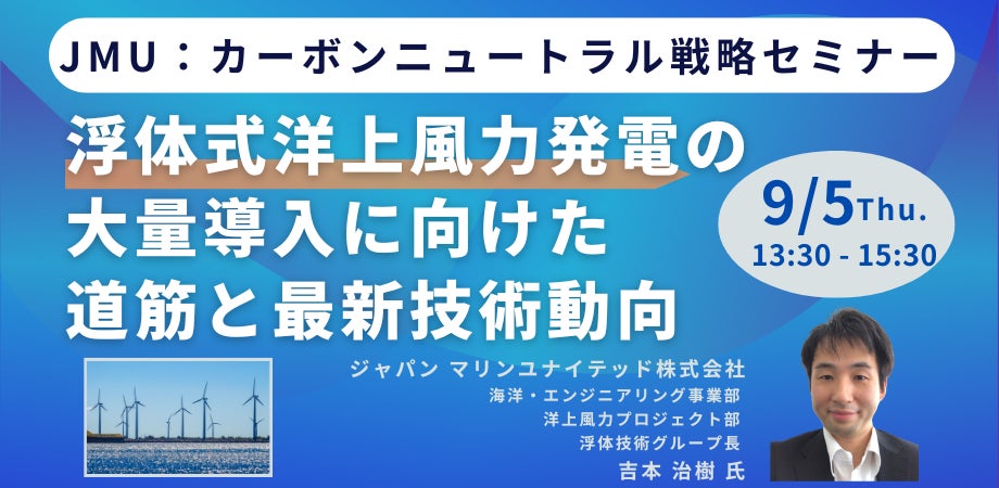 【JPIセミナー】ジャパン マリンユナイテッド(株)「浮体式洋上風力発電の大量導入に向けた道筋と最新技術動向」9月5日(木)開催