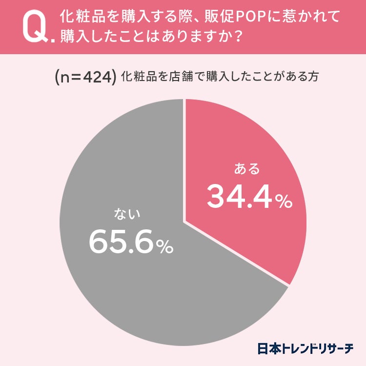 34.4%の方が化粧品を購入する際、販促POPに惹かれて購入したことが「ある」と回答しました。