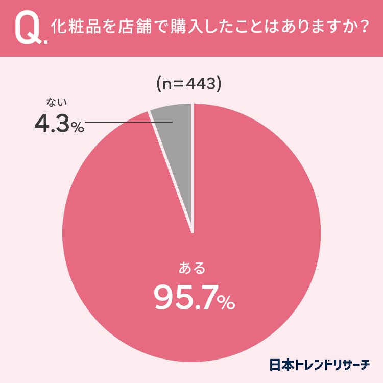 95.7%と、実に9割以上の方が「化粧品を店舗で購入したことがある」と回答しています。
