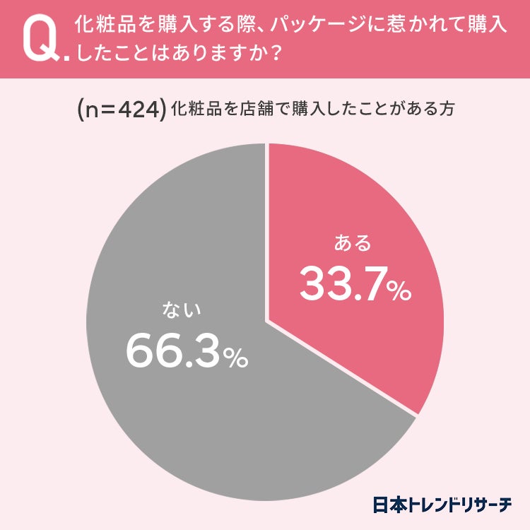 33.7%の方が化粧品を購入する際、パッケージに惹かれて購入したことが「ある」と回答しています。