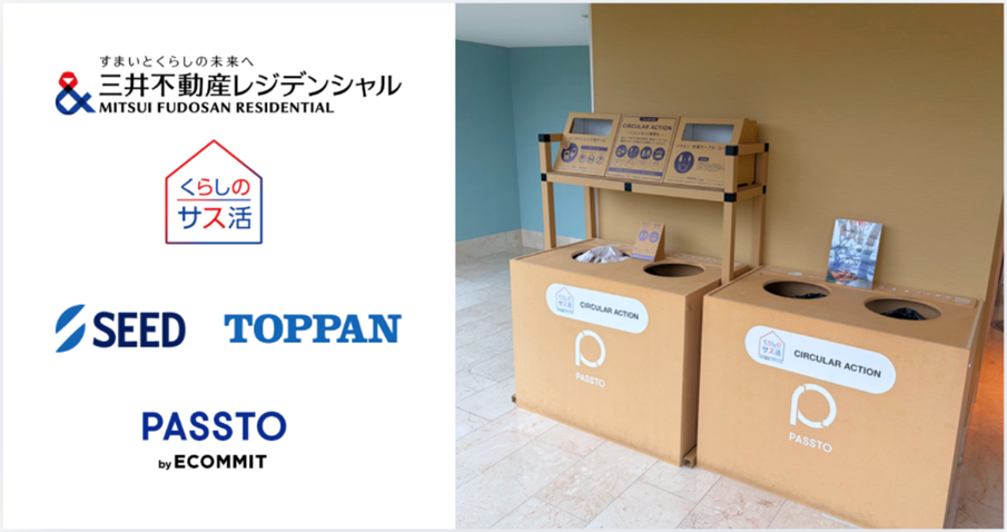 本取り組みは、三井不動産レジデンシャルが推進する、すまいとくらしから循環型社会の実現を目指すプロジェクト「くらしのサス活 Circular Action」の一環として実施するものです。手放せる不要品の幅を広げることで「捨てないくらし」の実践を促進することを目的に、ECOMMITが運営する資源循環サービス「PASSTO(パスト)」を活用し、従来の衣類・雑貨類の回収に加えて、「コンタクトレンズケース」、「推し活グッズ」、「家電ケーブル」、「靴」、など回収品目を拡大し、リユース・リサイクルを通じて資源循環を推進します。