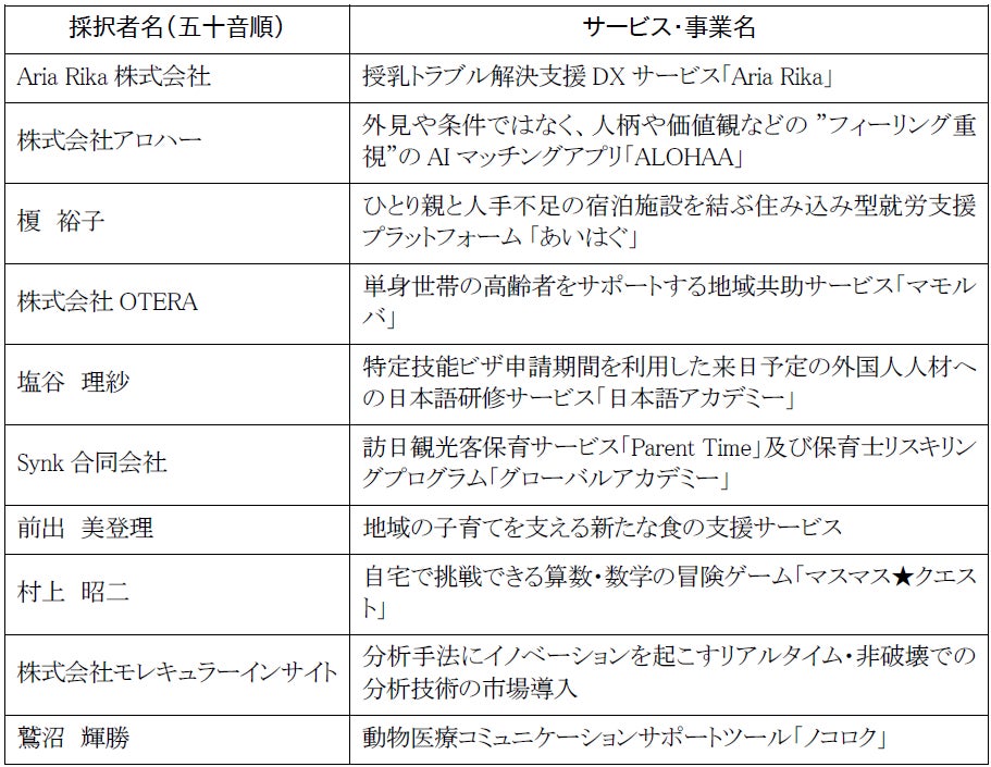 ※ベンチャー企業は企業名、起業準備者は氏名を記載しています。