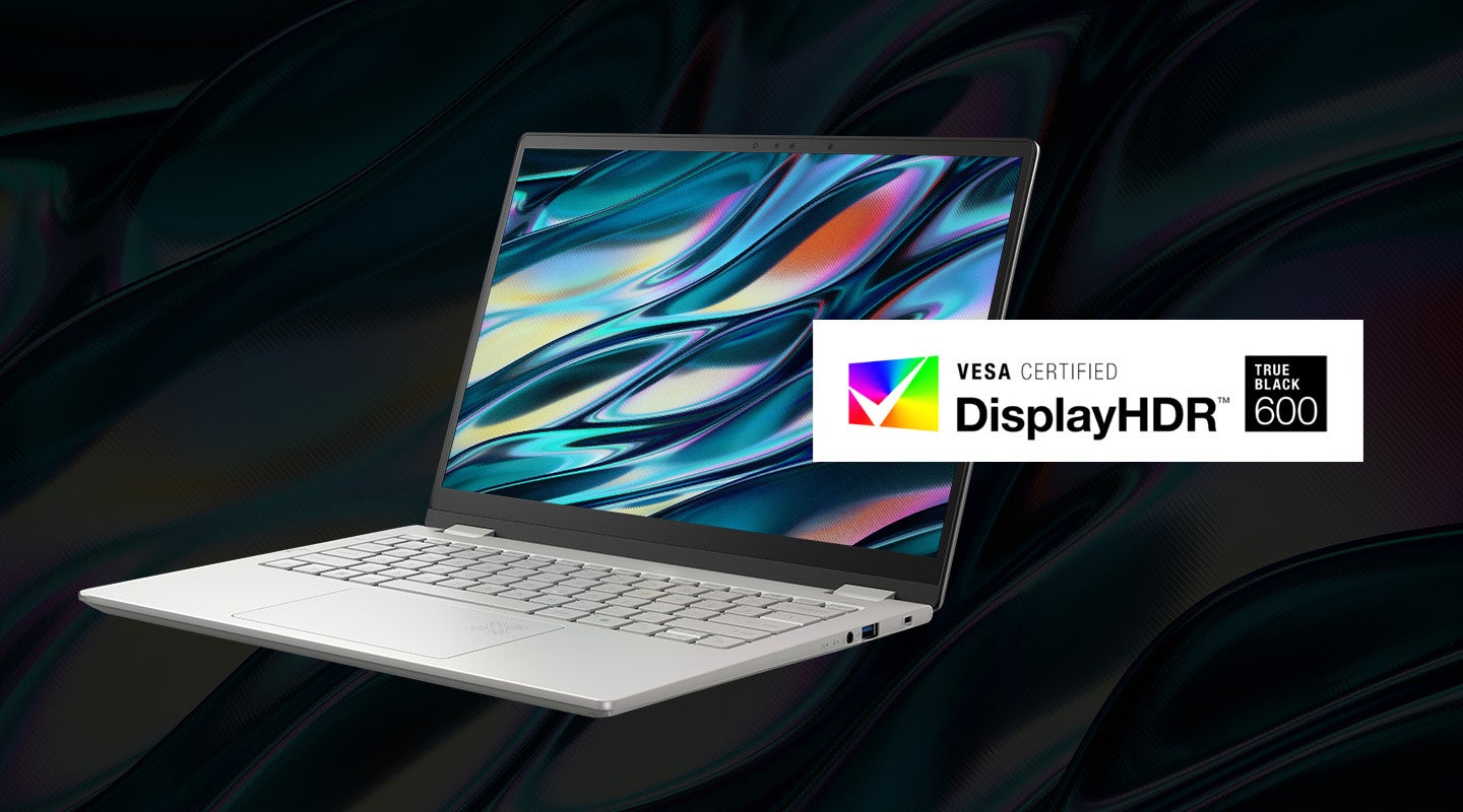 ディスプレイには、14インチ 2.8K(2880×1800)のOLED非光沢タッチスクリーンを搭載。DCI-P3 100%の広色域とVESA DisplayHDR™ True Black 600認証により、深みのある黒と鮮やかな映像表現を実現します。Corning® Gorilla™ Matte Pro ガラスの採用で反射を95%低減し、屋内外を問わずクリアな視認性を確保。さらにEyesafe® Certified 2.0を取得し、ブルーライトを50%低減することで長時間利用時の目の負担を軽減します。