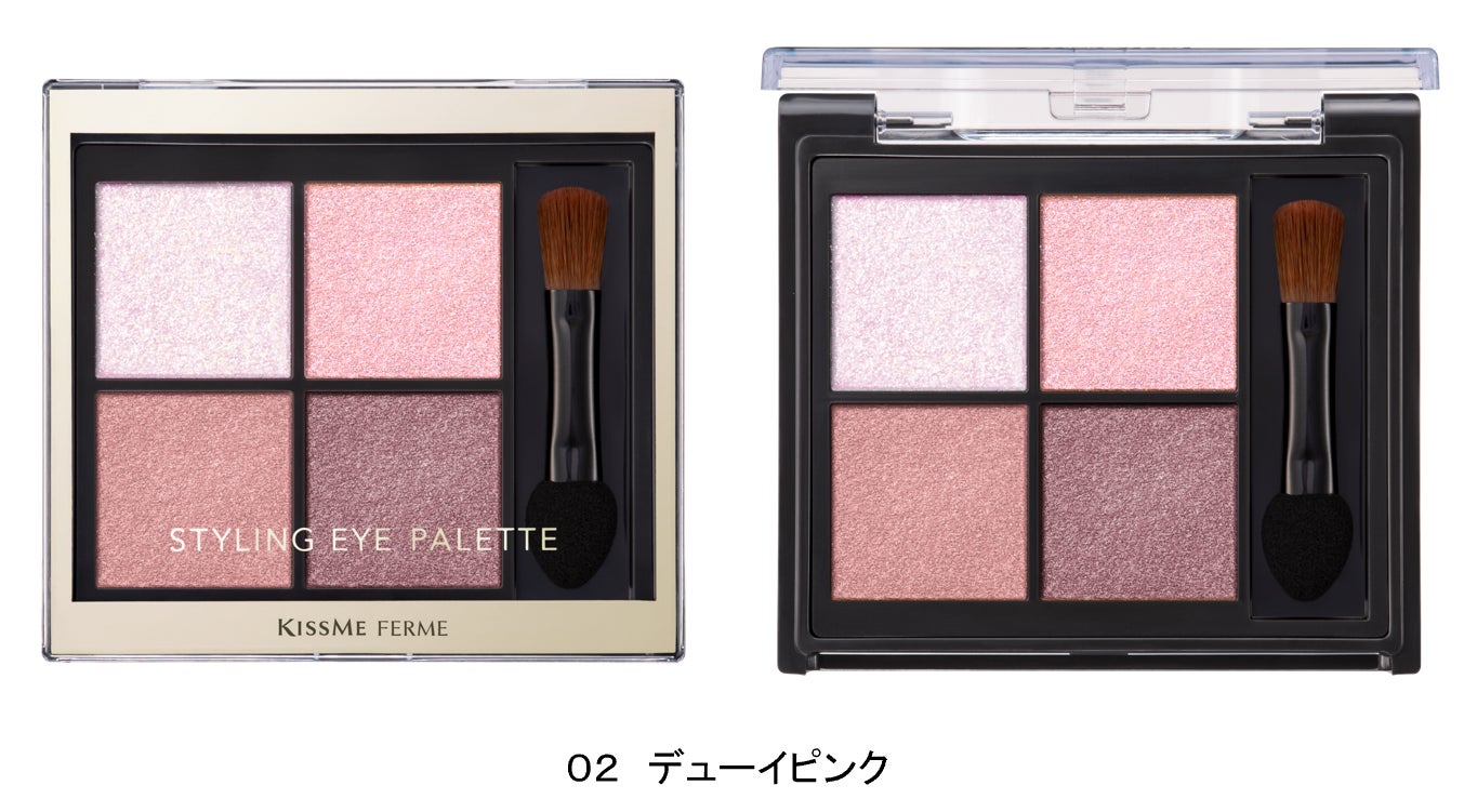しっとりなめらかなテクスチャーとクリアな発色で立体的な目元を演出するキスミー フェルムの「スタイリングアイパレット」から、繊細ラメでうるんだような瞳を叶える限定カラー「デューイピンク」が数量限定登場。