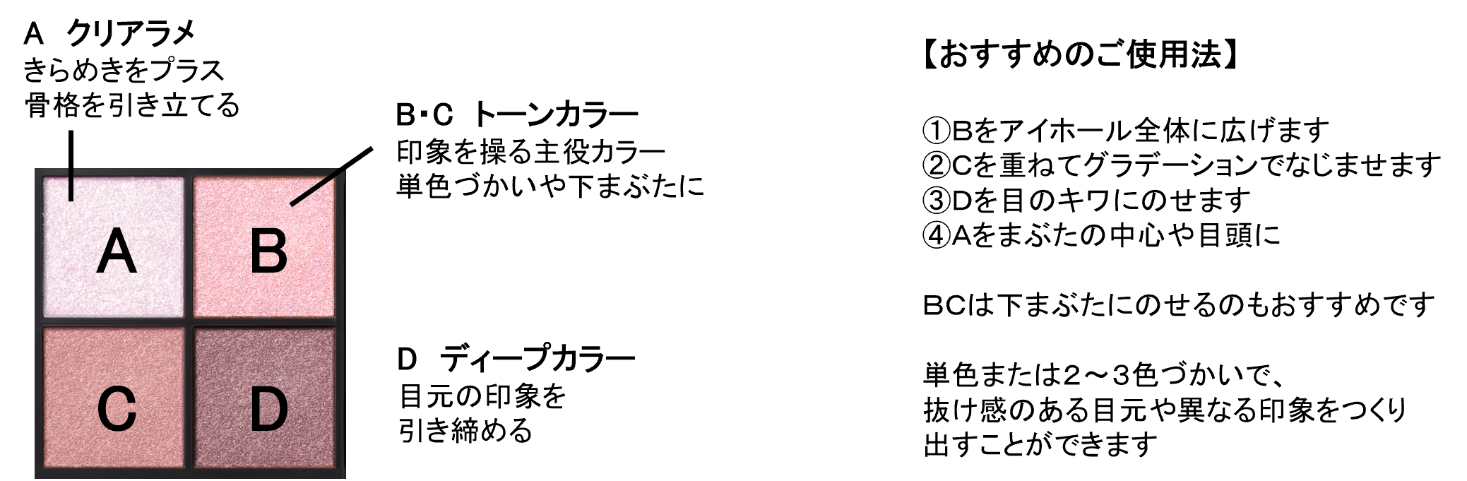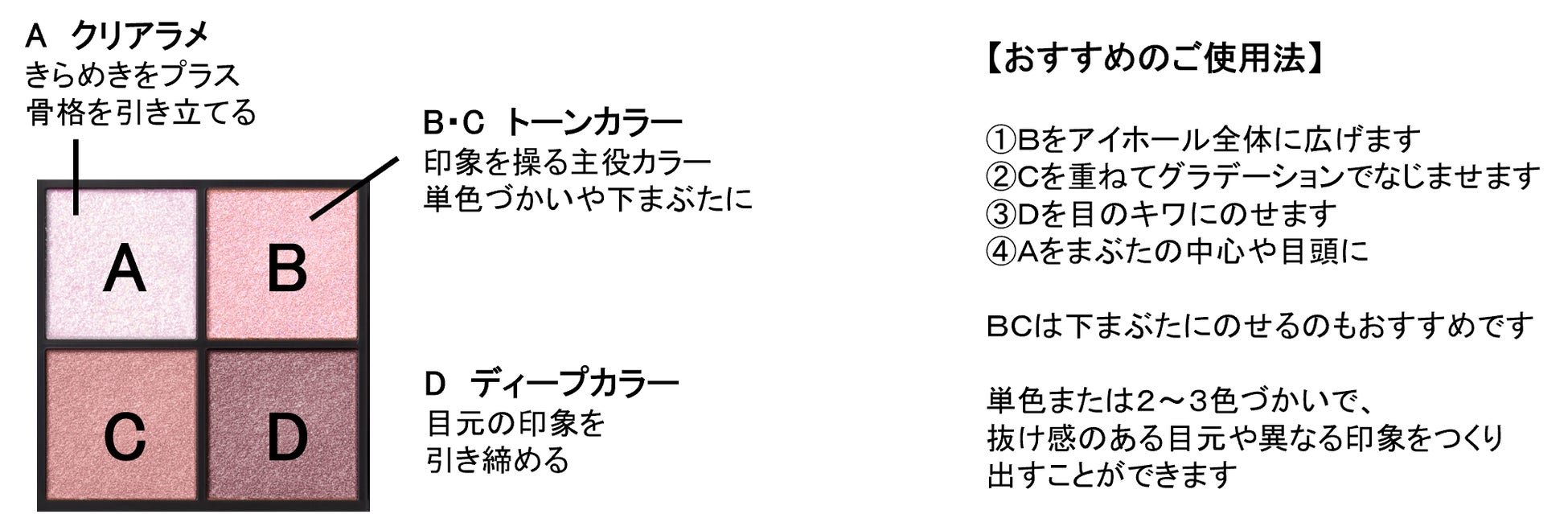 春の光を受けてきらめく花の雫のようなうるみ感をイメージした低温ピンクが、透明感を引き出し、うるんだような瞳を演出します。