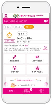 北海道七飯町に採用された『ななっぷる』は、スマートフォン・タブレット端末・PCに対応したサービスで、妊産婦と子どもの健康データの記録・管理や予防接種のスケジュール管理、出産・育児に関するアドバイスの提供、離れた地域に住む祖父母など家族との共有機能や、町が配信する地域の情報をお知らせするなど、育児や仕事に忙しい母親や父親を助けてくれる便利な機能が充実しています。