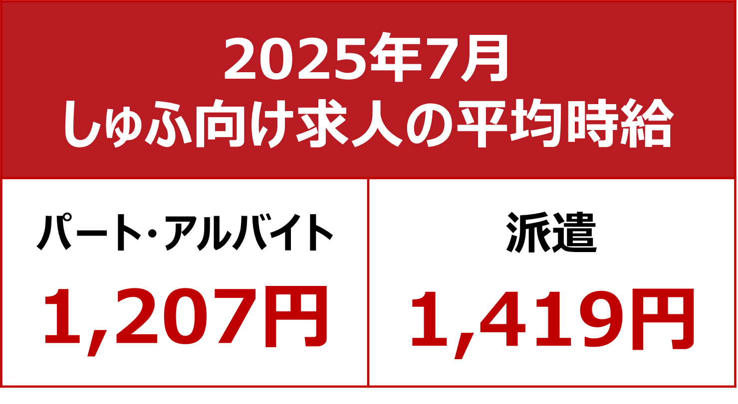 【2025年7月しゅふ求人の平均時給】パート・アルバイト:『1,207円』、派遣:『1,419円』