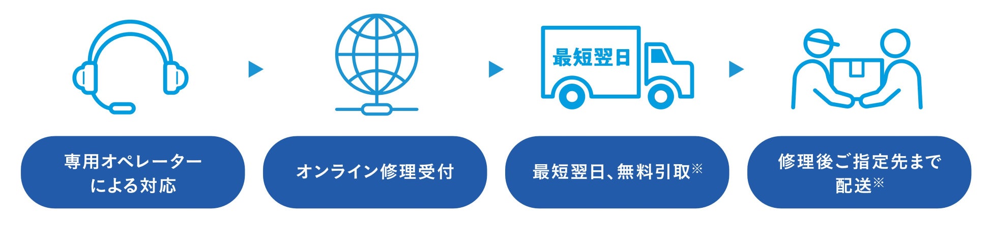 ※保証期間中のみ。サービス対象期間内で、2回目以降のメーカー保証対象外故障(自然故障を除く)に対する修理の場合、片道分の送料はお客様負担となります。