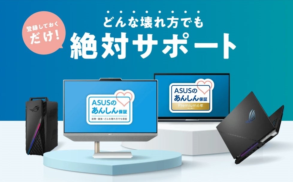 ASUS JAPAN株式会社は、 メーカー保証対象とならない自損故障にも対応し、修理費用の自己負担額を最小限に抑えることができる「ASUSのあんしん保証」サービスのうち、法人様向けに提供している「ASUSのあんしん保証プレミアム[法人向け]」にて、既存の4年保証、5年保証に加え、新たに6年保証サービスを開始することを発表いたしました。