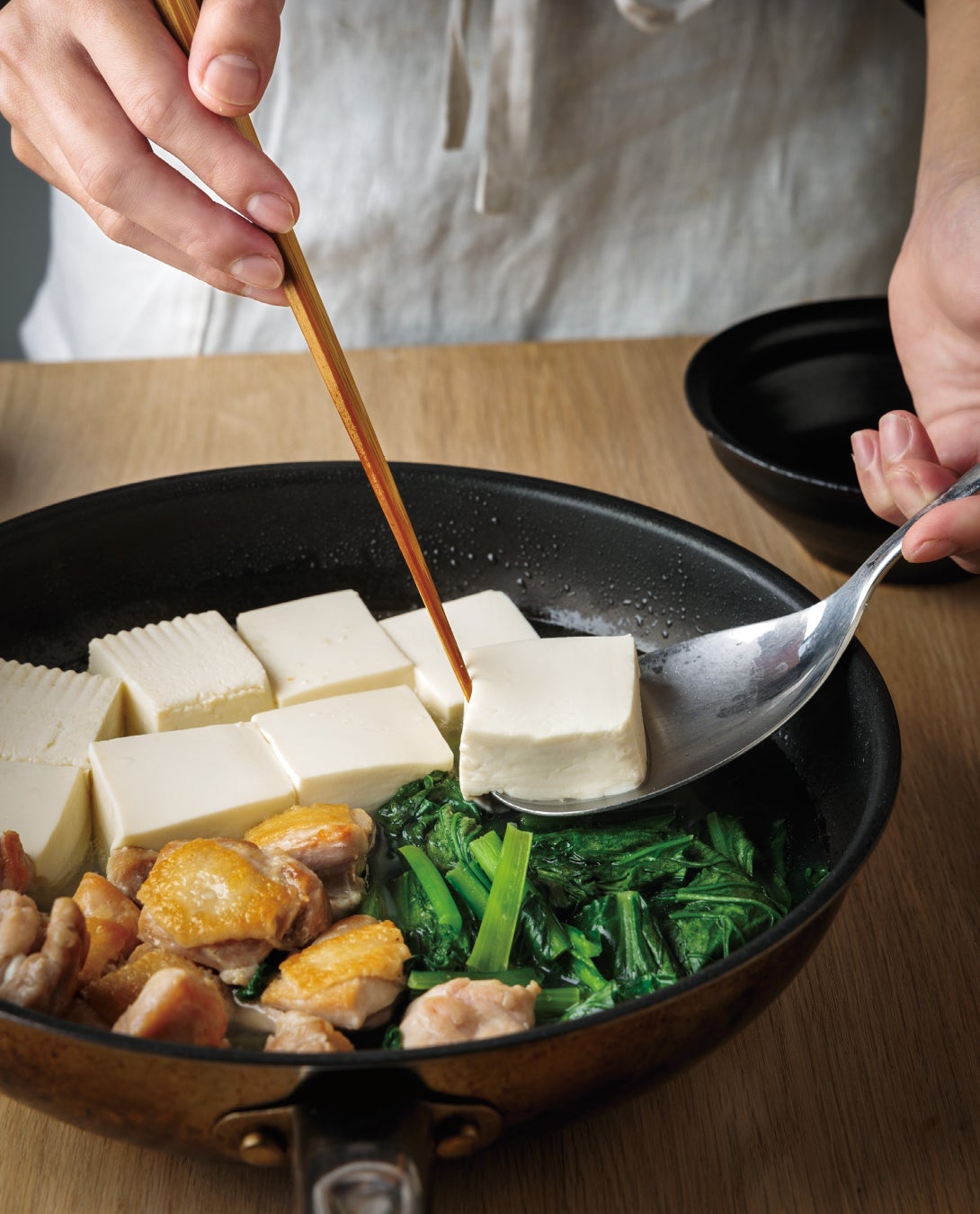 第1特集は、「豆腐のボリューム冬おかず」。「ウーさんのマーボー豆腐」や「豚と豆腐のねぎみそ炒め」「鶏と豆腐の塩煮」など、肉や魚介、旬の野菜と組み合わせた食べごたえのあるレシピをお届けします。