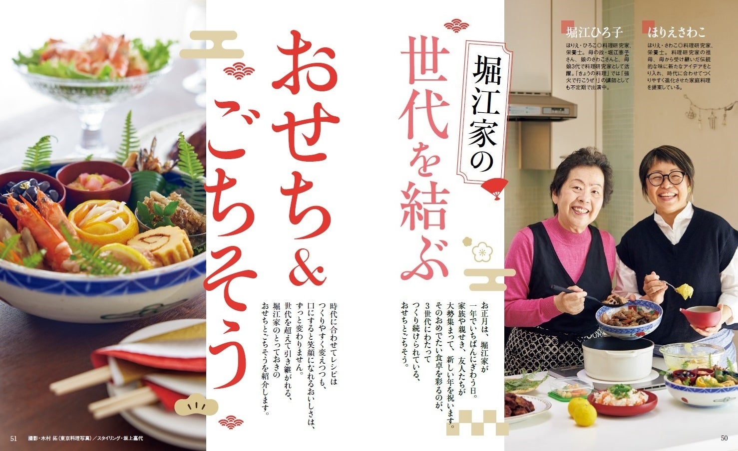 『きょうの料理』2025年1月号がNHK出版より、12月20日(金)に発売になりました。冬の食卓にぴったりの体も心も温まる料理が盛りだくさんの一冊です。年末年始特集「堀江家の 世代を結ぶおせち&ごちそう」が掲載されている12月号の放送も続きます。ぜひ併せてご活用ください。全国の書店、ネット書店、NHK出版サイトで好評発売中です。