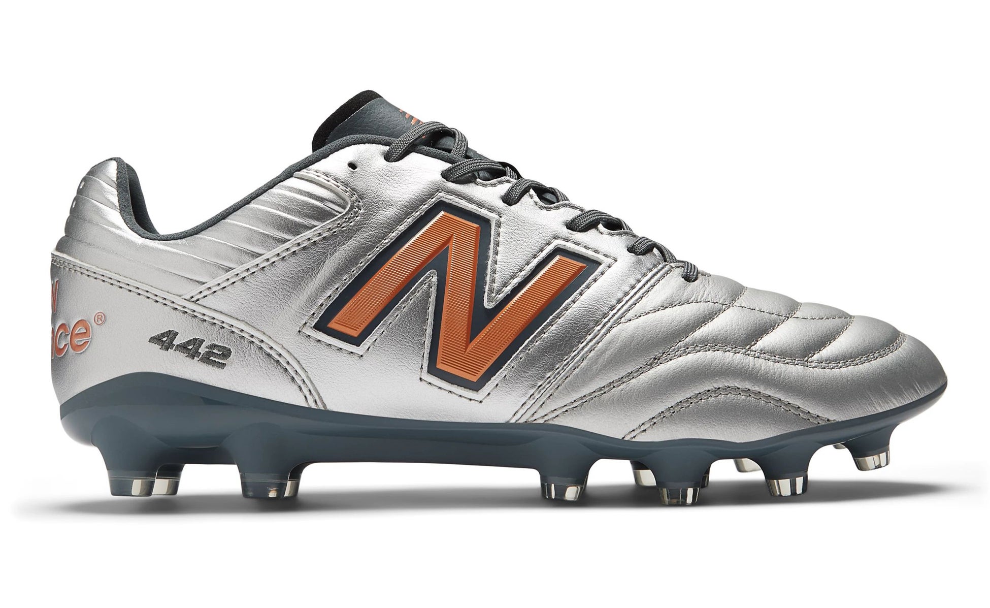 快適なフィットでパフォーマンスアップに貢献する「442 v2」のミドルレンジモデル「442 TEAM HG」から新色が登場。前足部に使用したカーフレザーが、天然皮革の足馴染みのよさと優れた耐久性を発揮。心地よいフィット性、グリップ性に優れたHGソールとともに、練習から試合まで幅広く活躍。足入れのしやすい2Eウイズ展開。