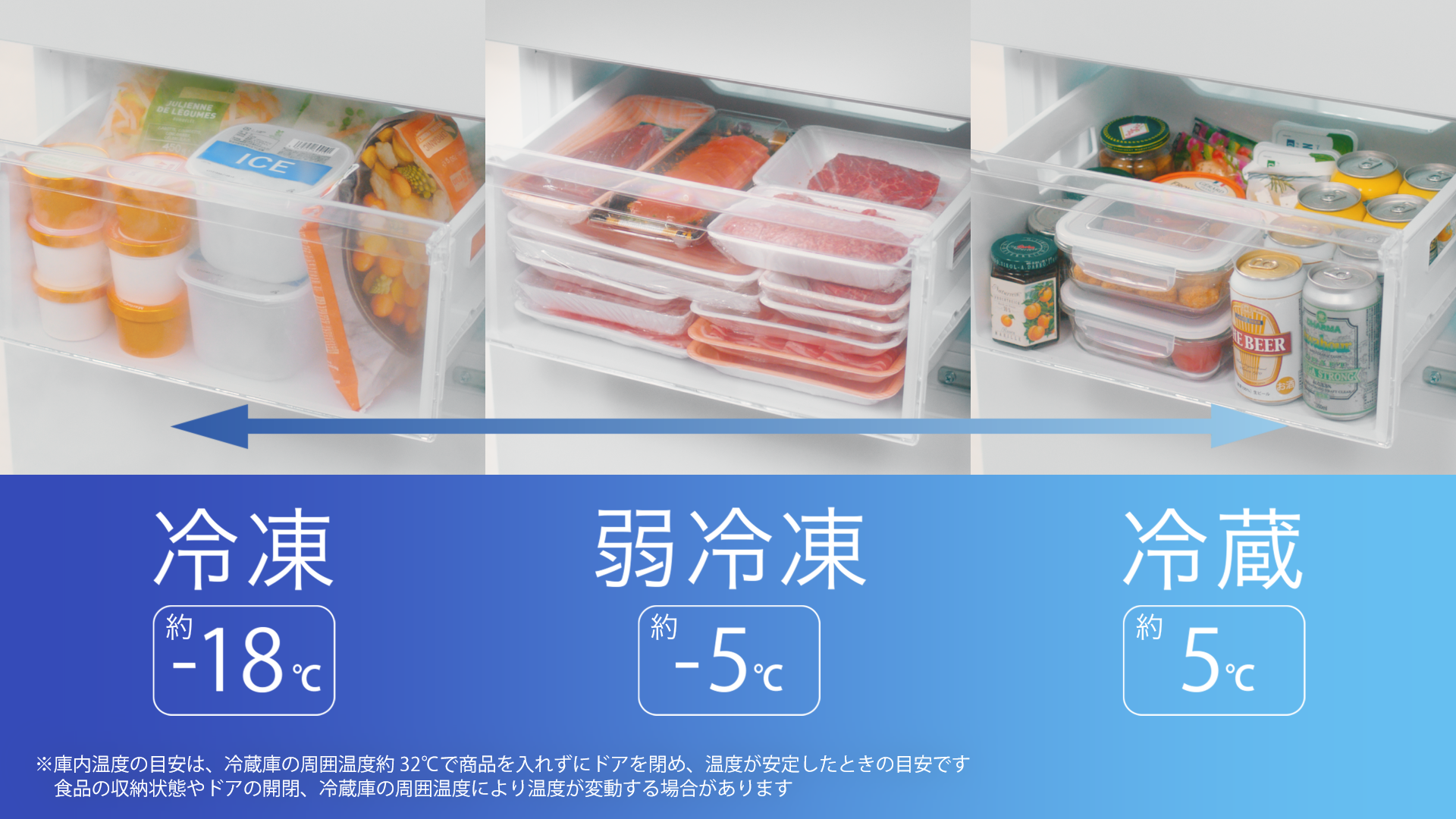 【定格内容積】全定格内容積:271L、冷蔵室:135L、冷凍室:100L、変温室36L