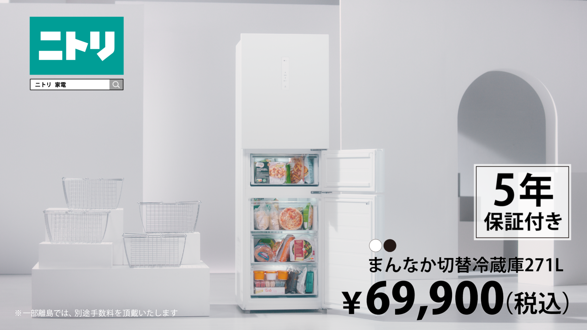 ニトリ家電新CM「冷蔵庫」篇(15秒): https://youtu.be/AONOocRnEEw