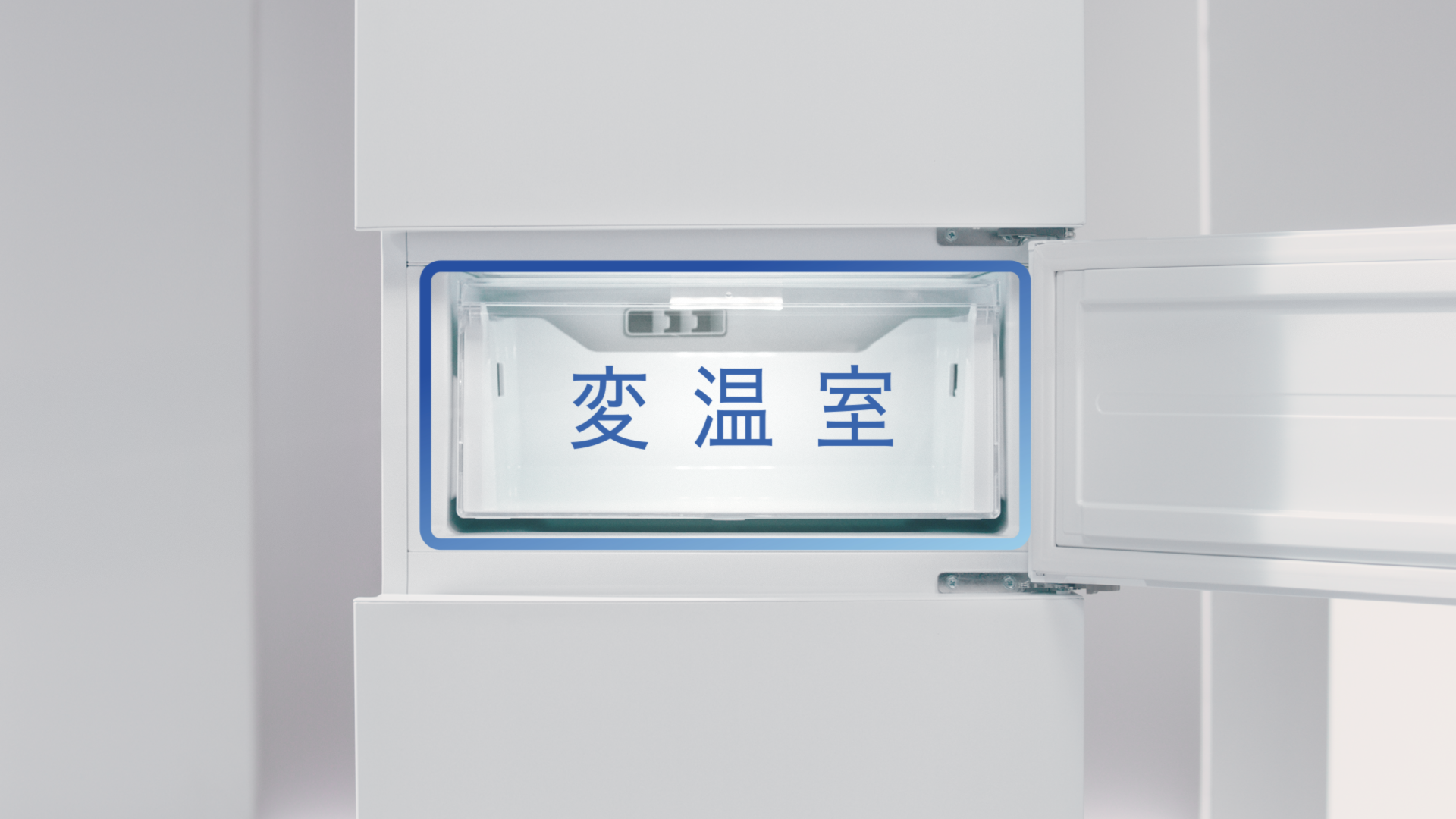 ニトリの「まんなか切替冷蔵庫」なら、温度を自由に調節できる変温室を食品に合わせて冷蔵にも冷凍にも自由自在に切り替えられます。冷凍室と変温室を合せると、買い物かご約4個分の食品をたっぷり冷凍保存可能です。まさに「食品保存の困った」を解決するために必要な機能を備えた冷蔵庫です。