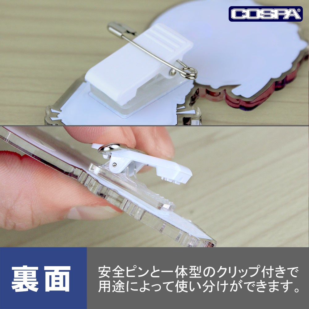・洋服やバッグ、文房具などに、裏面のクリップか安全ピンで取り付けよう!