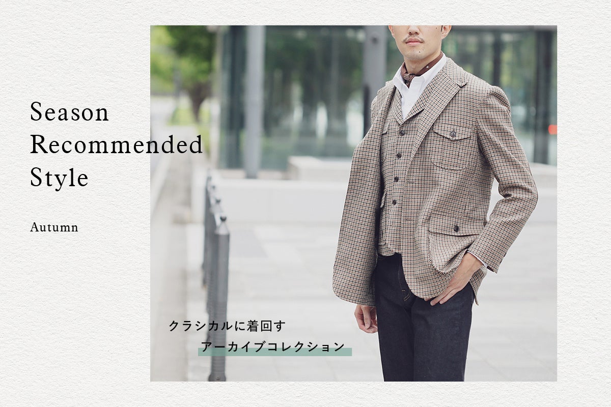 過去のコレクションで展開していたアイテムや柄をリプロダクトする企画「ARCHIVE NEWYORKER」が今シーズンよりスタート。今回のシーズンレコメンド特集は、アーカイブコレクションの中から1988年秋冬コレクションのガンクラブチェック柄生地を復刻した、ジャケット&ベストの着こなしを6スタイルご紹介します。