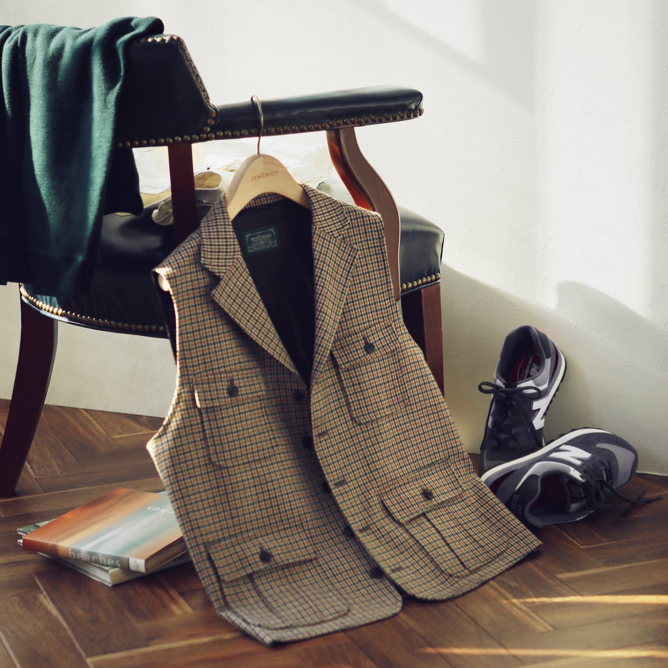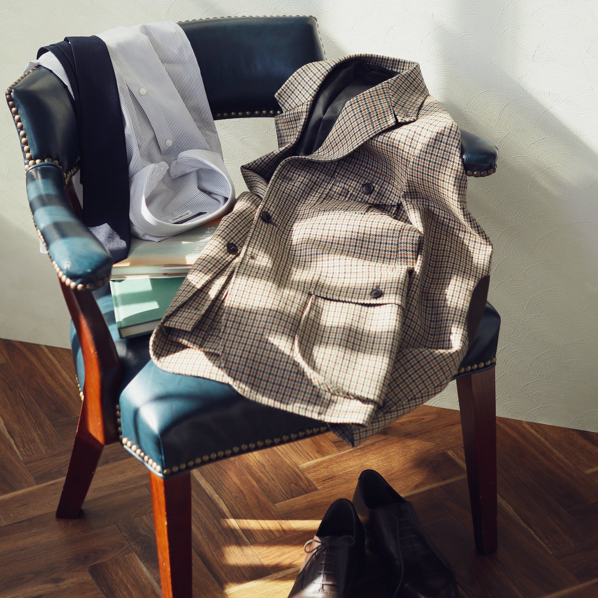 復刻したガンクラブチェックを施し、当時トラッドスタイルで親しまれたアイテムを現代風にアレンジ。エルボーパッチやアクションプリーツ、マチ付きポケットなど細かなディテールを詰め込んだ、懐かしくも新しい1着です。