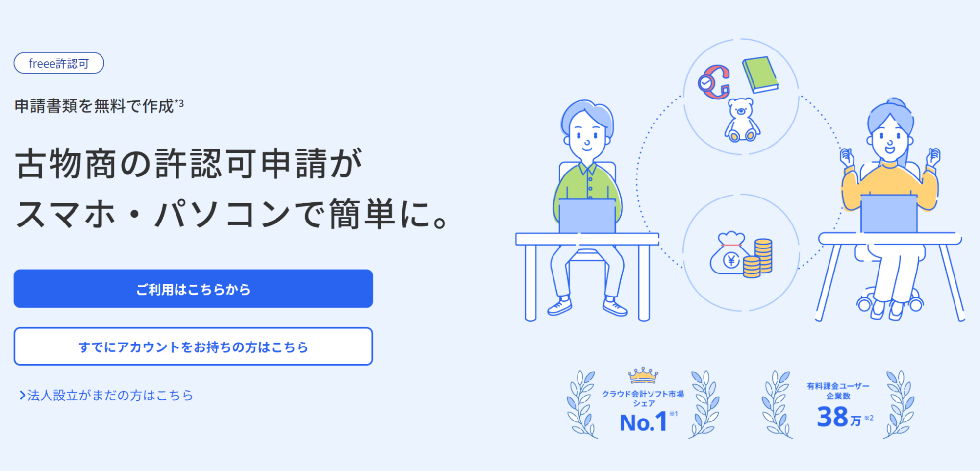 freee許認可、古物商営業許可に対応