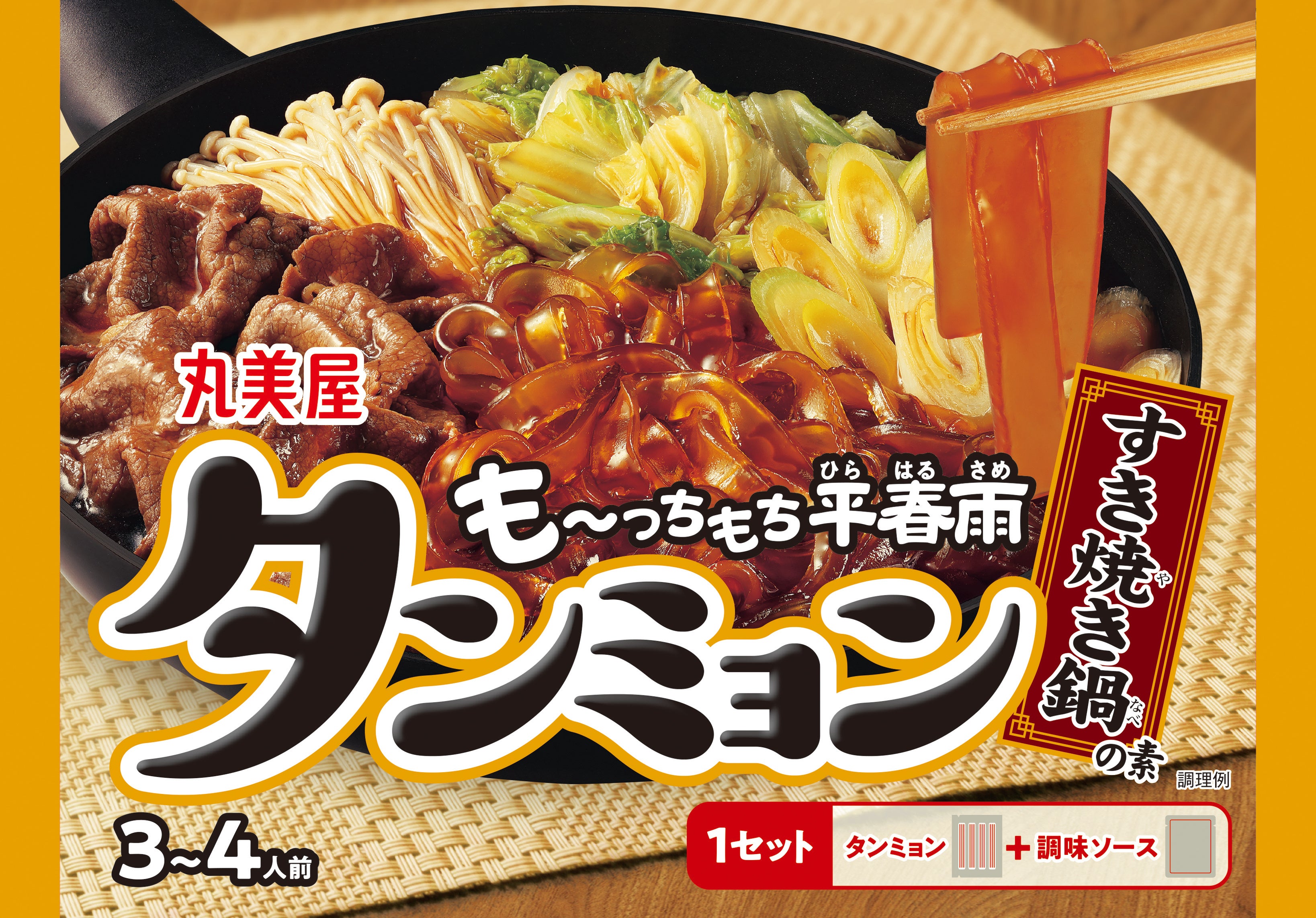 もちもちの食感と噛み応えが特徴のタンミョンと「すき焼き鍋の素」の調理ソースがセットになっています。醤油ベースの甘じょっぱい「すき焼き味」の鍋仕立てなので子供も食べやすく、家族みんなで楽しめます。