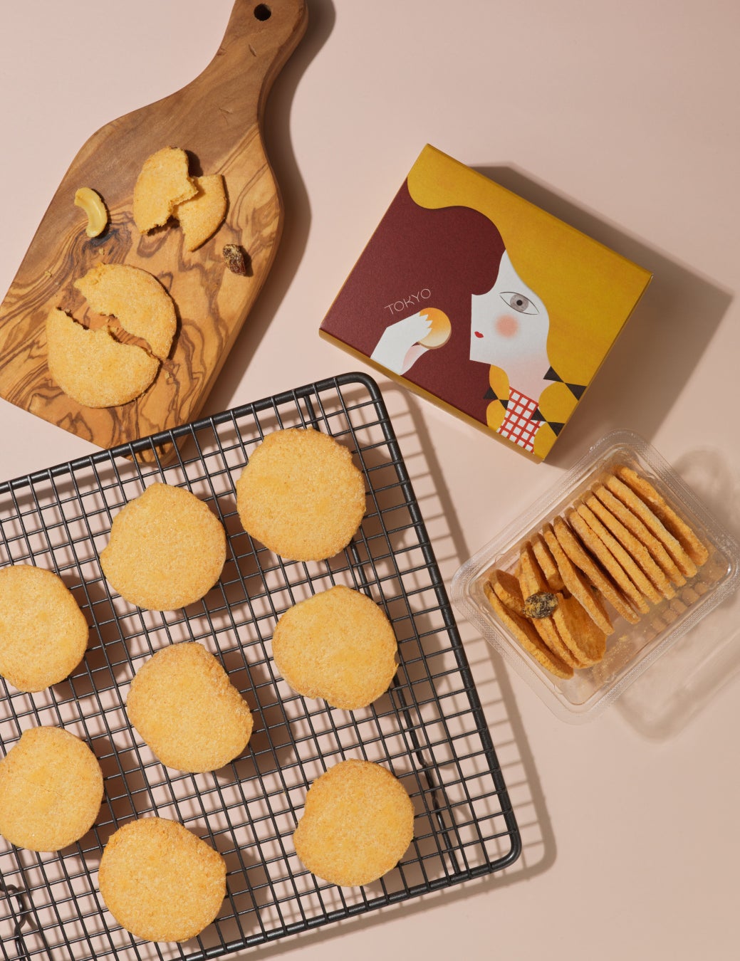 使用する2種のチーズ、ゴーダ&チェダーチーズは、終売商品『チーズクッキー』シリーズの中で最も人気の高かったフレーバーです。それぞれのチーズのコクや旨味という特徴を活かし、生地や仕上げのパウダーにもチーズをしっかりと使用することで、口に入れた瞬間にチーズのコクや芳醇な香りが広がる、専門店ならではの本格的なチーズスイーツに。おつまみの甘く香ばしいアーモンドも忘れずに、最後まで美味しく召し上がりいただける商品に仕上げました。