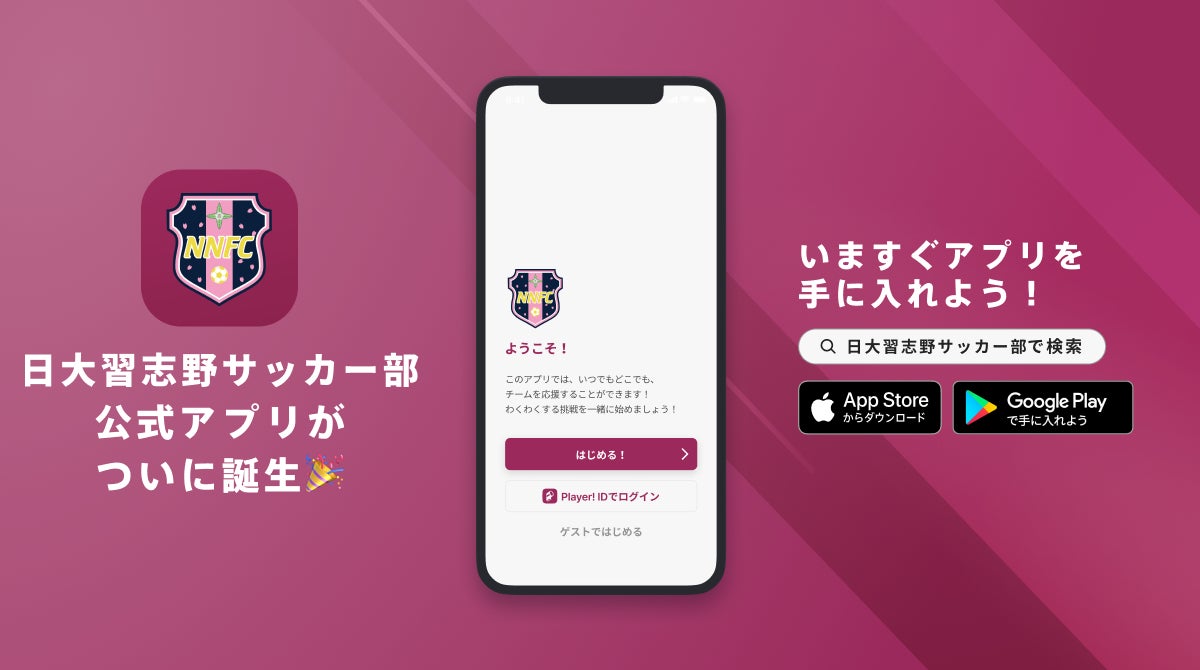 AppStoreもしくはGooglePlayで「日大習志野サッカー部」と検索!